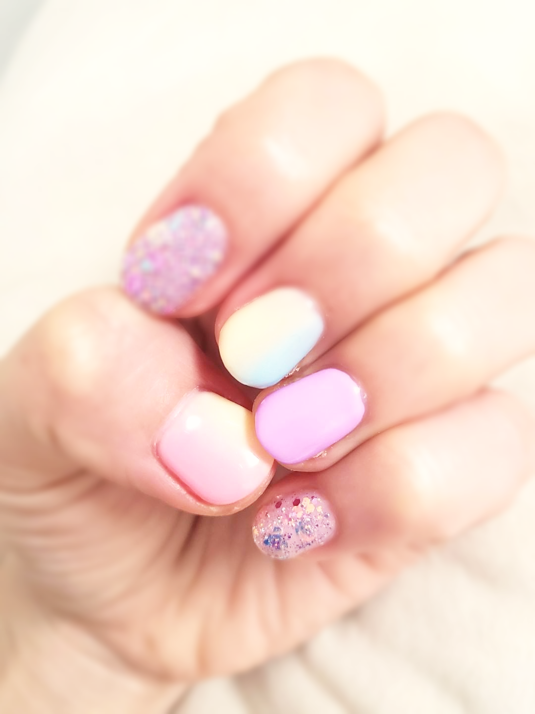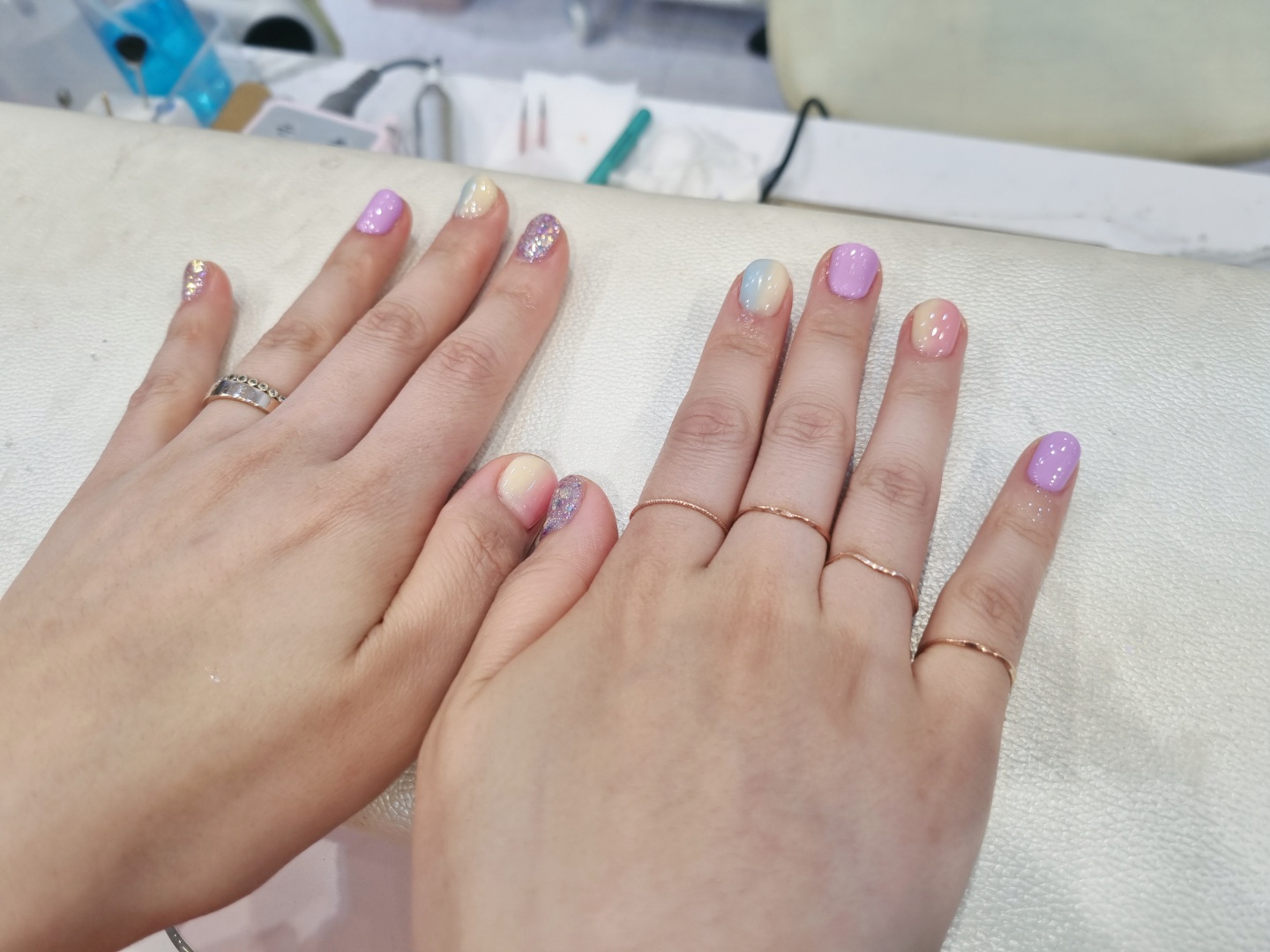 그래서 자연스럽게 파스텔톤으로 결정하였고 포인트로 글리터도 넣어주었어요.