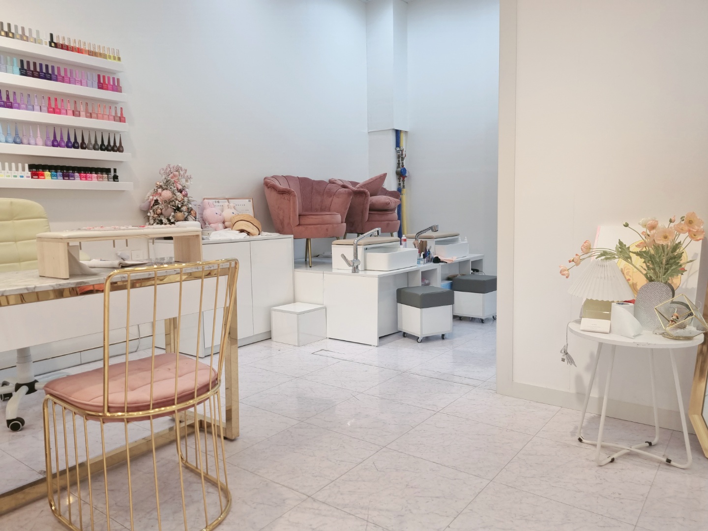 네일숍의 내부도 깔끔하고 전체는 화이트에 핑크 포인트를 주어 아기자기하면서 예뻐 보이죠?